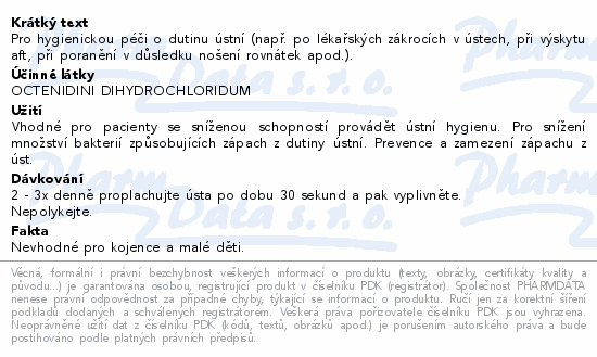 Pro hygienickou péči o dutinu ústní (např. po lékařských zákrocích v ústech, při výskytu aft, při poranění v důsledku nošení rovnátek apod.).