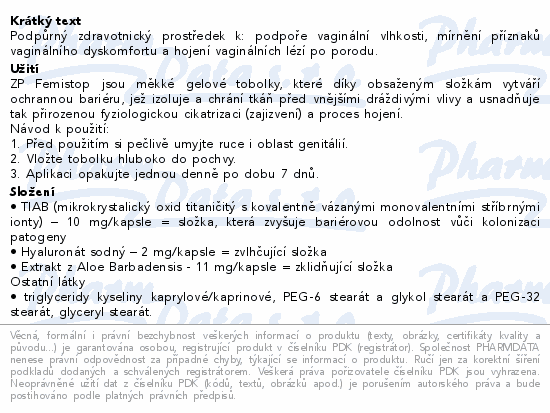 Podpůrný zdravotnický prostředek k: podpoře vaginální vlhkosti, mírnění příznaků vaginálního dyskomfortu a hojení vaginálních lézí po porodu.