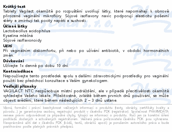Tablety Vagilact okamžitě po rozpuštění uvolňují látky, které napomáhají k obnově přirozené vaginální mikroflóry. Sójové isoflavony navíc podporují elasticitu poševní stěny a zmírňují tak pocity napětí a suchosti.