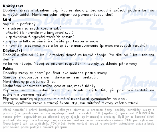 Doporučené dávkování: Dospělí a děti od 12 let 1-2 tablety denně. Pro děti od 3 let 1 tabletu denně. Tabletu rozpustit ve sklenici pitné vody.