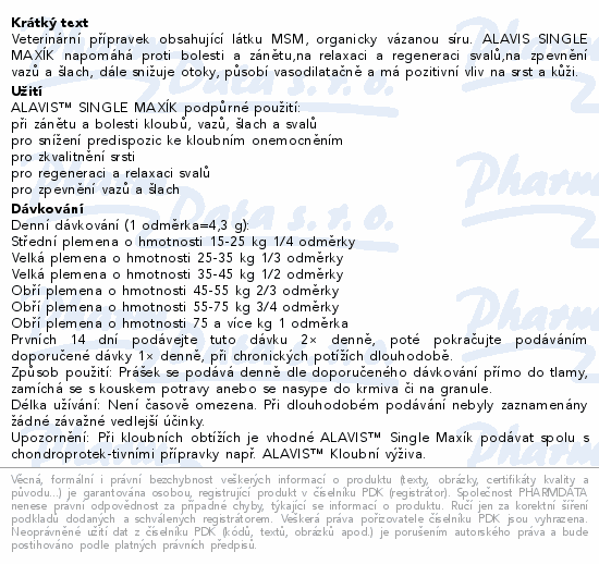 Veterinární přípravek pro psy na podporu proti zánětu a bolesti kloubů, svalů a šlach, na zpevnění vazů a šlach a na regeneraci a relaxaci svalů. Ultra čistá podoba látky MSM v kombinaci s patentovanými hydrol. kolageny Cartidyss typu II a Collyss typu I