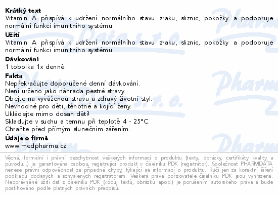 Vitamin A přispívá k udržení normálního stavu zraku, sliznic, pokožky a podporuje normální funkci imunitního systému.