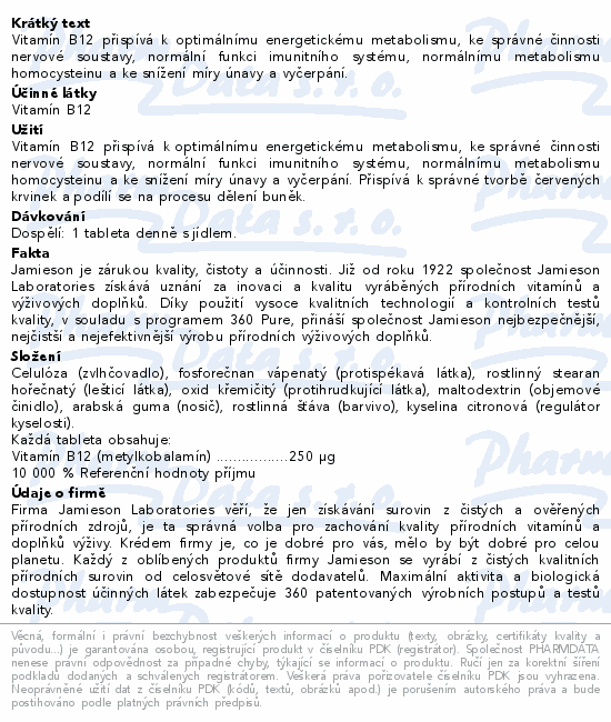 Jamieson Vit.B12 kyanokobalamin 100tbl.