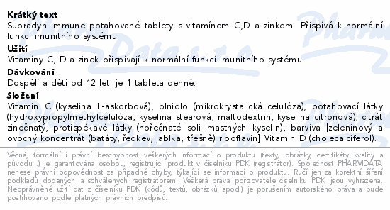 Supradyn Immune potahované tablety s vitamínem C,D a zinkem. Přispívá k normální funkci imunitního systému.