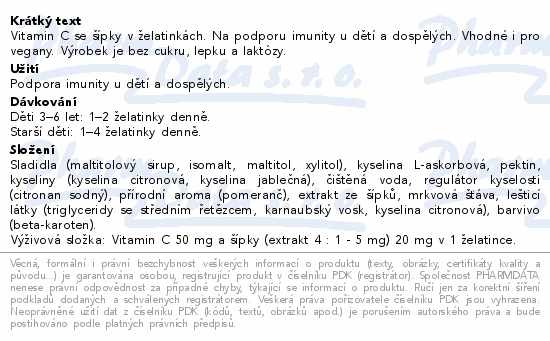 Doporučené dávkování se liší podle věku – u dětí se obvykle doporučuje 1 želatinka denně, u dospělých až 2 želatinky. Nepřekračujte doporučené denní dávkování. Doplněk stravy není náhradou pestré a vyvážené stravy.