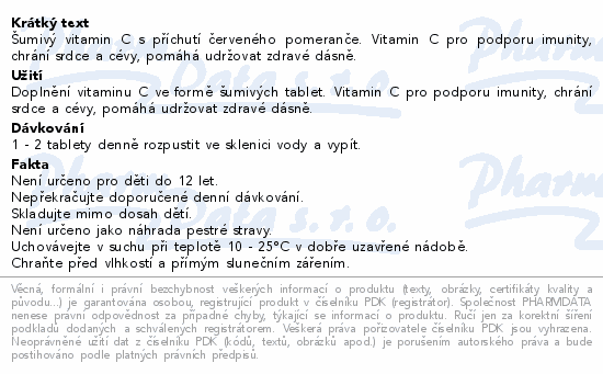 Šumivý vitamin C s příchutí červeného pomeranče. Vitamin C pro podporu imunity, chrání srdce a cévy, pomáhá udržovat zdravé dásně.