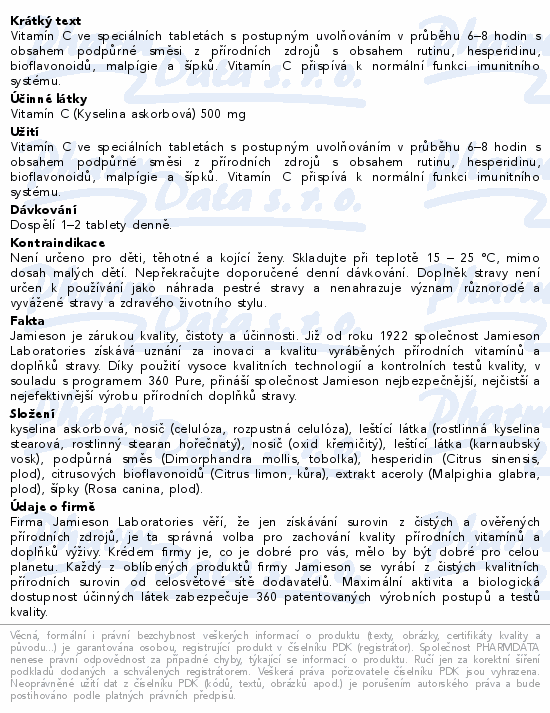 JAMIESON Vitamín C 500mg post.uvol.100tb