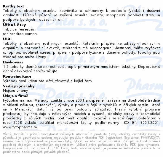 Tobolky s obsahem extraktu kotvičníku a schizandry k podpoře fyzické i duševní odolnosti. Příznivě působí ke zvýšení sexuální aktivity, schopnosti odolávat stresu a podpoře fyzických i duševních sil.