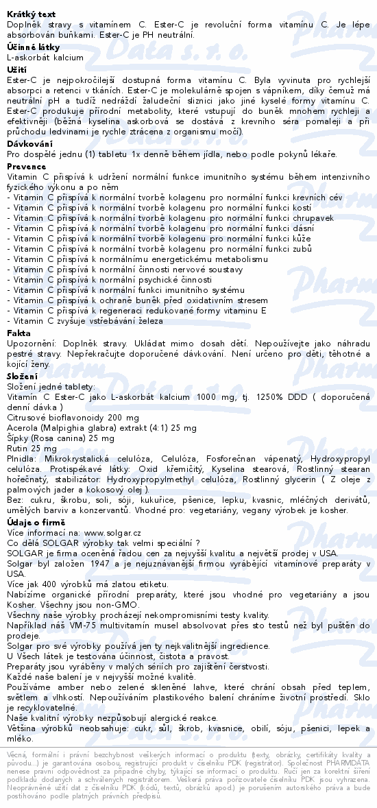 Doplněk stravy s vitamínem C. Ester-C je revoluční forma vitamínu C. Je lépe absorbován buňkami. Ester-C je PH neutrální a nezpůsobuje podráždění žaludku.