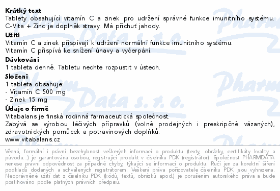 Tablety obsahující vitamín C a zinek pro udržení správné funkce imunitního systému. C-Vita + Zinc je doplněk stravy. Má příchuť jahody.