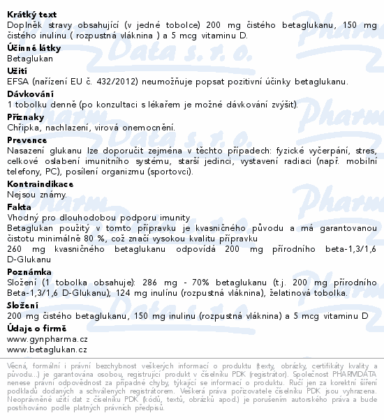 Betaglukan použitý v tomto přípravku je kvasničného původu a má garantovanou čistotu minimálně 80 %, což značí vysokou kvalitu přípravku. 260 mg kvasničného betaglukanu odpovídá 200 mg přírodního beta-1,3/1,6 D-Glukanu.