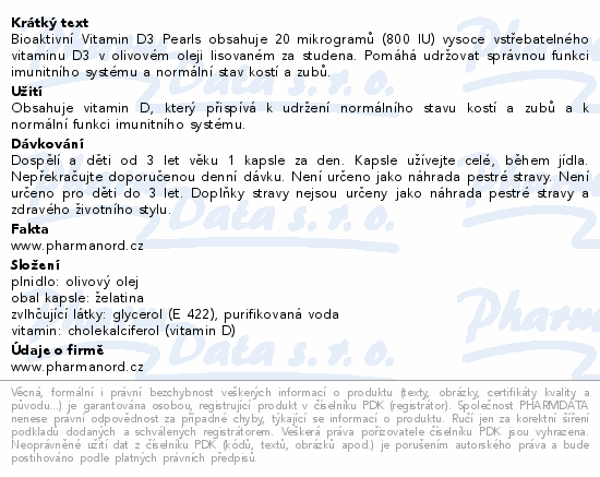 Bioaktivní Vitamin D3 Pearls obsahuje 20 mikrogramů vysoce vstřebatelného vitaminu D3 v jedné kapsli. Pomáhá udržovat správnou funkci imunitního systému a normální stav kostí a zubů.