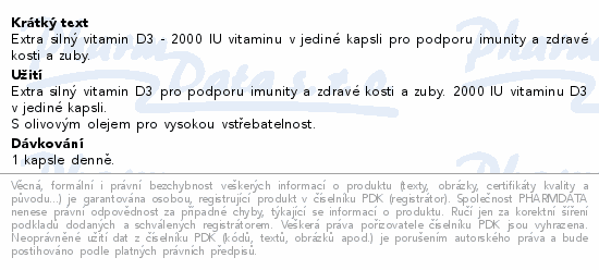 Extra silný vitamin D3 - 2000 IU vitaminu v jediné kapsli pro podporu imunity a zdravé kosti a zuby.
