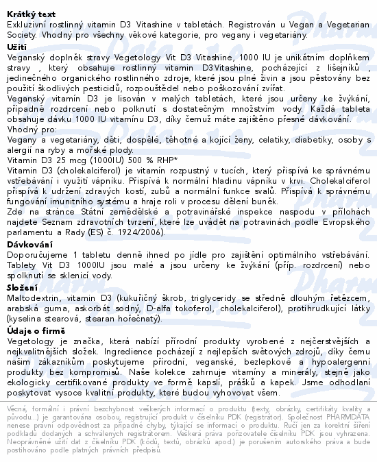 Vegetology Vit D3 Vitashine 1000IU tbl.60