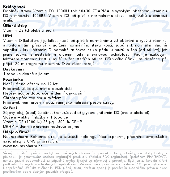 Vitamin D3 1000IU tob.60+30 ZDARMA