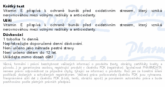Vitamin E přispívá k ochraně buněk před oxidativním stresem, který vzniká nerovnováhou mezi volnými radikály a antioxidanty.