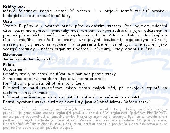 Měkké želatinové kapsle obsahující vitamin E v olejové formě zaručují vysokou biologickou dostupnost účinné látky.