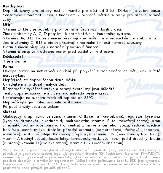 Doplněk stravy pro zdravý rust a imunitu pro děti od 3 let. Dárkem je zubní pasta Sensodyne Pronamel Junior s fluoridem k ochraně dětské skloviny pro silné a zdravé zuby.