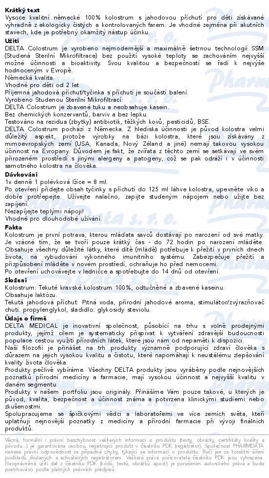 Vysoce kvalitní německé 100% kolostrum s jahodovou příchutí pro děti získávané výhradně z ekologicky čistých a kontrolovaných farem. Je vhodné zejména při akutních stavech, kde je potřebný okamžitý nástup účinku.