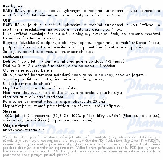 BABY IMUN je sirup s pečlivě vybranými přírodními surovinami, hlívou ústřičnou a rakytníkem řešetlákovým na podporu imunity pro děti již od 1 roku.