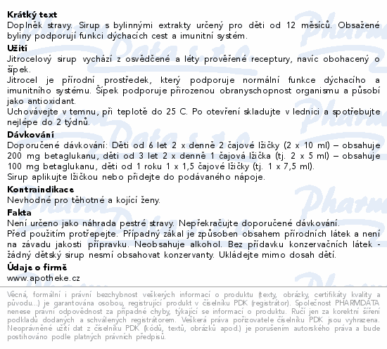 Doplněk stravy. Sirup s bylinnými extrakty určený pro děti od 12 měsíců. Obsažené byliny podporují funkci dýchacích cest a imunitní systém.
