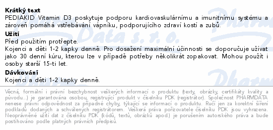 PEDIAKID Vitamin D3 poskytuje podporu kardiovaskulárnímu a imunitnímu systému a zároveň pomáhá vstřebávání vápníku, podporujícího zdraví kostí a zubů.