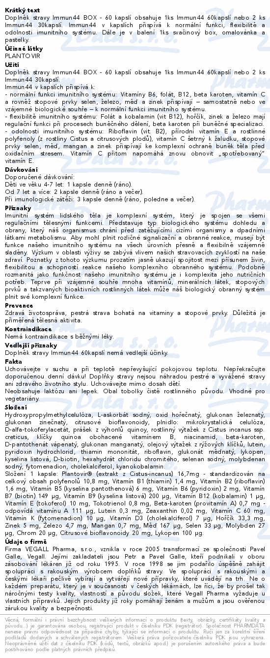 Doplněk stravy Immun44 BOX - 60 kapslí obsahuje 1ks Immun44 60kapslí nebo 2 ks Immun44 30kapslí. Immun44 v kapslích přispívá k normální funkci, flexibilitě a odolnosti imunitního systému. Dále je v balení 1ks svačinový box, omalovánka a pastelky.