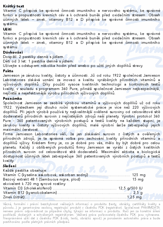 Vitamin C přispívá ke správné činnosti imunitního a nervového systému, ke správné funkci a propustnosti krevních cév a k ochraně buněk před oxidačním stresem. Obsah účinných látek – zinek, vitaminy B12 a D přispívá ke správné činnosti imunitního systému.