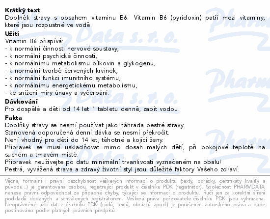 Pyridoxin je vhodný pro osoby s vyšší psychickou nebo fyzickou zátěží, ženy v období hormonálních výkyvů, sportovce nebo jedince s jednostrannou stravou. Uplatňuje se rovněž v období rekonvalescence nebo jako podpora při dlouhodobém stresu.