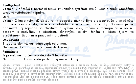 Vitamin D přispívá k normální funkci imunitního systému, svalů, kostí a zubů. Umožňuje správné vstřebávání vápníku.