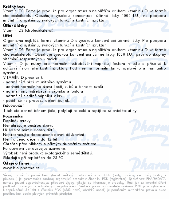 Vitamin D3 Forte 1000 I.U.tbl.90+90 BIO-