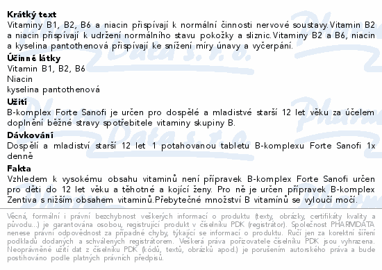Vitaminy B1, B2, B6 a niacin přispívají k normální činnosti nervové soustavy.Vitamin B2 a niacin přispívají k udržení normálního stavu pokožky a sliznic.Vitaminy B2 a B6, niacin a kyselina pantothenová přispívají ke snížení míry únavy a vyčerpání.
