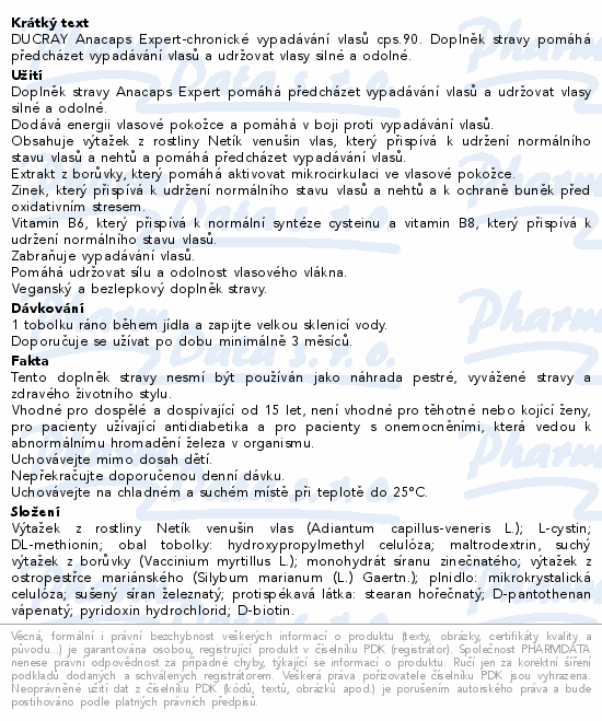 DUCRAY Anacaps Expert-chronické vypadávání vlasů cps.90. Doplněk stravy pomáhá předcházet vypadávání vlasů a udržovat vlasy silné a odolné.