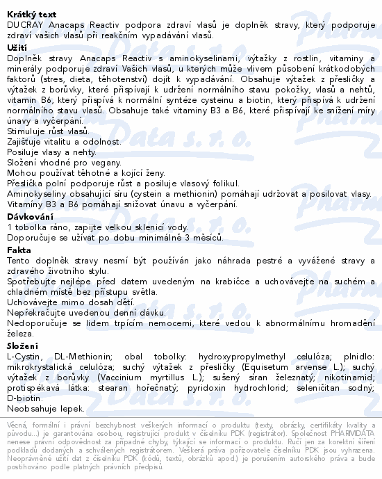 DUCRAY Anacaps Reactiv podpora zdraví vlasů je doplněk stravy, který podporuje zdraví vašich vlasů při reakčním vypadávání vlasů.