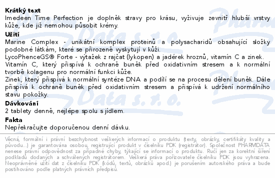 Imedeen Time Perfection je doplněk stravy pro krásu, vyživuje zevnitř hlubší vrstvy kůže, kde již nemohou působit krémy.
