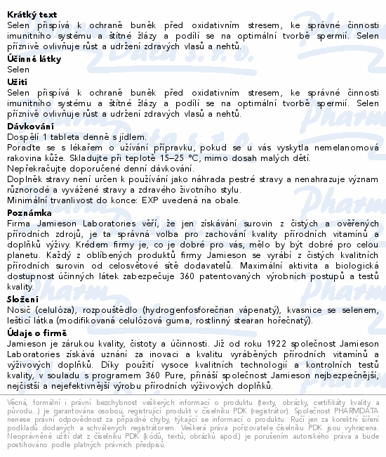 Selen přispívá k ochraně buněk před oxidativním stresem, ke správné činnosti imunitního systému a štítné žlázy a podílí se na optimální tvorbě spermií. Selen příznivě ovlivňuje růst a udržení zdravých vlasů a nehtů.