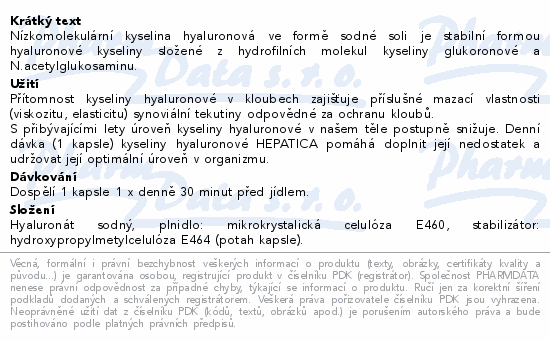 Nízkomolekulární kyselina hyaluronová ve formě sodné soli je stabilní formou hyaluronové kyseliny složené z hydrofilních molekul kyseliny glukoronové a N.acetylglukosaminu.