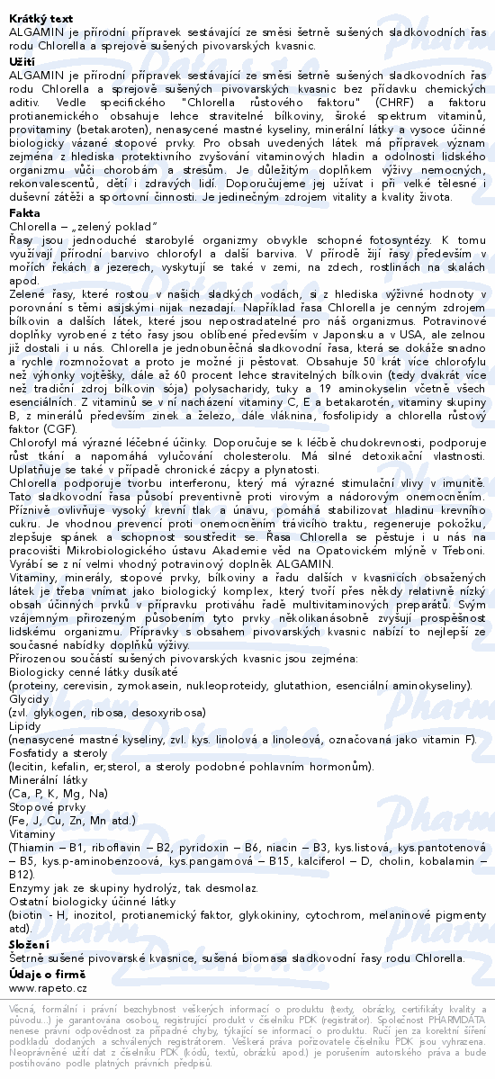ALGAMIN je přírodní přípravek sestávající ze směsi šetrně sušených sladkovodních řas rodu Chlorella a sprejově sušených pivovarských kvasnic.