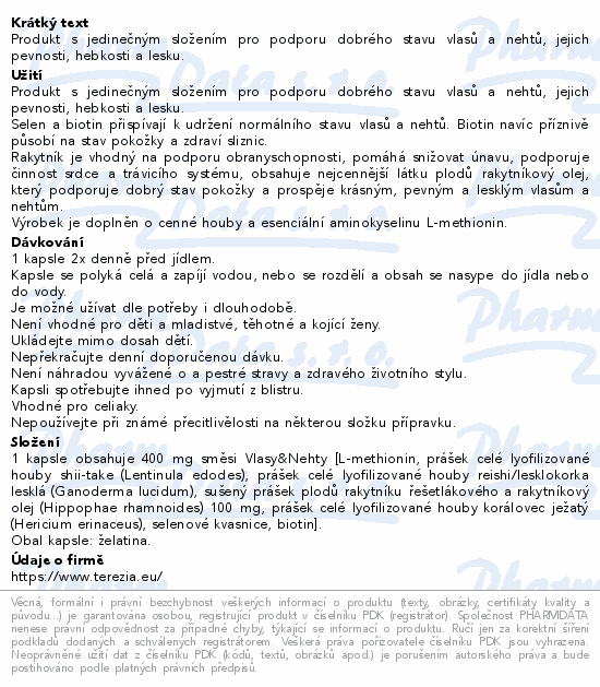 Produkt s jedinečným složením pro podporu dobrého stavu vlasů a nehtů, jejich pevnosti, hebkosti a lesku.