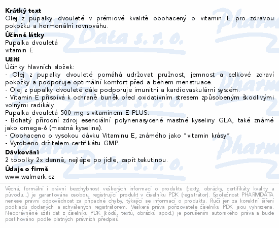 Olej z pupalky dvouleté v prémiové kvalitě obohacený o vitamin E pro zdravou pokožku a hormonální rovnováhu.