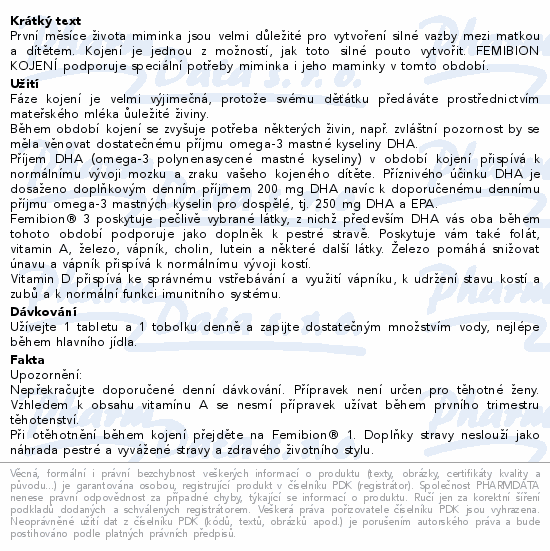 První měsíce života miminka jsou velmi důležité pro vytvoření silné vazby mezi matkou a dítětem. Kojení je jednou z možností, jak toto silné pouto vytvořit. FEMIBION KOJENÍ podporuje speciální potřeby miminka i jeho maminky v tomto období.