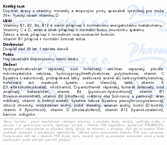Doplněk stravy s vitamíny, minerály a stopovými prvky speciálně vytvořený pro muže 50+. Vysoký obsah vitamínu D.
