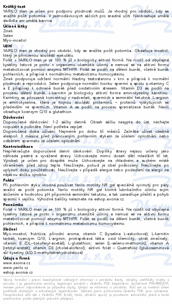 YARILO man je určen pro podporu plodnosti mužů. Je vhodný pro období, kdy se snažíte počít potomka. V jednodávkových sáčcích pro snadné užití. Neobsahuje umělá sladidla ani umělá barviva.