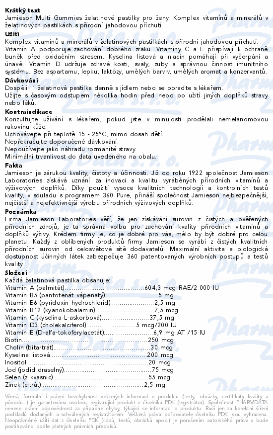 Jamieson Multi Gummies želatinové pastilky pro ženy. Komplex vitamínů a minerálů v želatinových pastilkách s přírodní jahodovou příchutí.