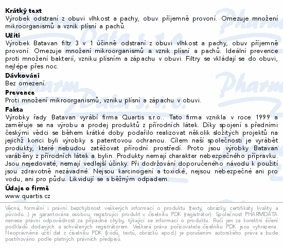 Výrobek odstraní z obuvi vlhkost a pachy, obuv příjemně provoní. Omezuje množení mikroorganismů a vznik plísní a pachů.
