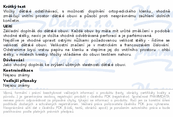 Vložky dětské odstřihávací, s možností doplnění ortopedického klenku, vhodně změkčují vnitřní prostor dětské obuvi a působí proti nesprávnému zaúhlení dolních končetin.