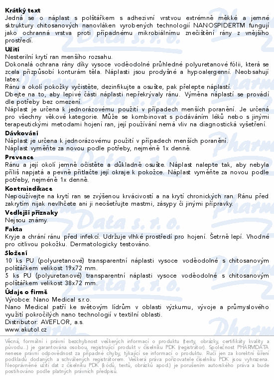 Jedná se o náplast s polštářkem s adhezivní vrstvou extrémně měkké a jemné sktruktury chitosanových nanovláken vyrobených technologií NANOSPIDERTM fungují jako ochranná vrstva proti případnému mikrobiálnímu znečištění rány z vnějšího prostředí.