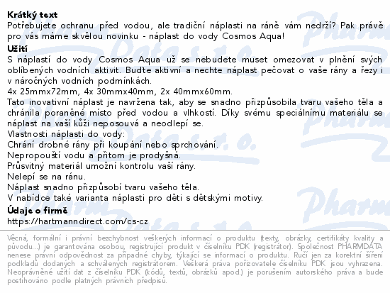 Potřebujete ochranu před vodou, ale tradiční náplasti na ráně vám nedrží? Pak právě pro vás máme skvělou novinku - náplast do vody Cosmos Aqua!