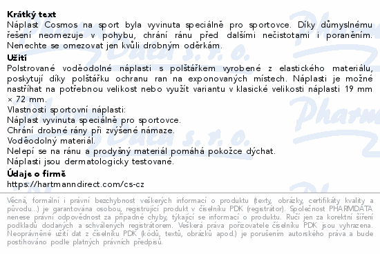 Náplast Cosmos na sport byla vyvinuta speciálně pro sportovce. Díky důmyslnému řešení neomezuje v pohybu, chrání ránu před dalšími nečistotami i poraněním. Nenechte se omezovat jen kvůli drobným oděrkám.