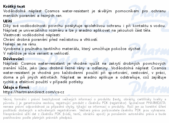 Voděodolná náplast Cosmos water-resistant je skvělým pomocníkem pro ochranu menších poranění a řezných ran.
